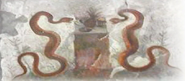 Chodzi o fresk znajdujący się w ruinach starożytnych Pompejów, w pochodzącym z epoki rzymskiej Domu Efeba. Na fresku znajdują się dwa węże wijące się wokół postumentu, na którym leży ananas. Co w tym dziwnego, zapytacie? Widocznie Mieszkańcy domu lubili egzotyczne owoce. Ano chodzi o to, że wspomniany ananas nie miał prawa znaleźć się na fresku, bowiem większość historyków i badaczy twierdzi, że mieszkańcy basenu Morza Śródziemnego nie znali tego owocu.