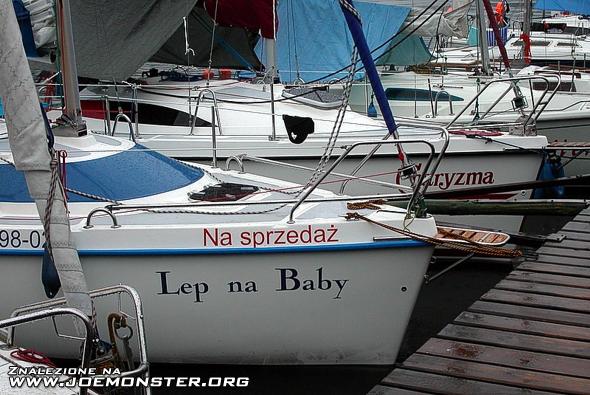 Niektórzy wierzą święcie, iż nazwa łódki może w jakiś sposób wpłynąć na jej losy. W przypadku Titanica nie do końca się to sprawdziło, jako że Tytan niekoniecznie powinien popłynąć pierwszy i ostatni raz, ale taka drobnostka nie powinna zrażać nas do tej śmiałej teorii. I nie zraża, czego dowodem jest choćby „Lep na baby” (ciekawe czy działa?), albo „Nie utonie”.