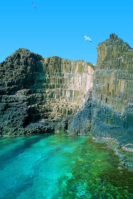 Wyspa jest pochodzenia wulkanicznego, brzeg urozmaicony pięknymi „fiordami”, groty na wyspie, a największe atrakcje mamy po zachodniej stronie wyspy, tzw. formy skalne Kleftiko, jakie zobaczymy na zdjęciach.