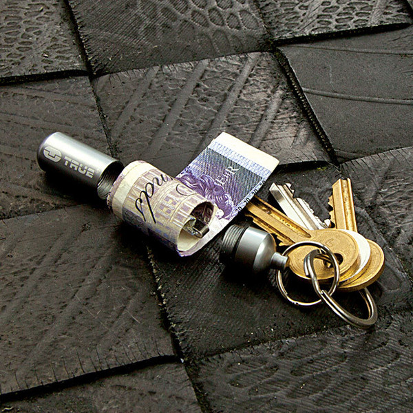 CashStash jest poręcznym mini pojemnikiem do przechowywania np. banknotu czy tabletki. Obudowa gadżetu uszczelniona jest gumowym o-ringiem, który doskonale zabezpiecza przenoszoną zawartość przed wpływem czynników zewnętrznych, np. wody. Do kompletu dołączony jest także niewielki stalowy klips CashClip ułatwiający zwinięcie banknotu. CashStash wykonany został z aluminium lotniczego. Stalowe kółko o średnicy 10 mm umożliwia jego przypięcie.