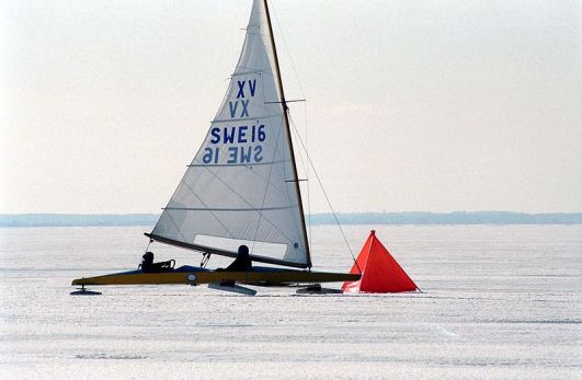 Żeglarstwo lodowe, jak wskazuje sama nazwa, jest uprawiane na zamarzniętych zbiornikach wodnych. Jednostki używane na uprawiania tej dyscypliny sportu nazywane są bojerami lub ślizgami lodowymi. Poruszają się one po zamarzniętej tafli wody na płozach.