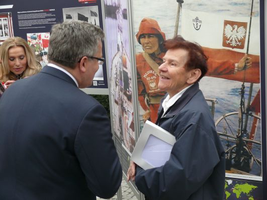 Najbardziej znani polscy żeglarze wzięli udział w otwarciu wystawy „Biało-czerwona na morzach i oceanach”, którą uroczyście otworzył prezydent Bronisław Komorowski w Dniu Flagi, 2 maja. Wystawa zlokalizowana jest na placu przed Pałacem Prezydenckim, a czynna będzie do 16 czerwca. Ekspozycja stanowi swego rodzaju podsumowanie kilkudziesięciu lat polskiego żeglarstwa oceanicznego, a na czarno-białych i kolorowych obrazach zaprezentowano kilkadziesiąt słynnych rejsów z udziałem polskich żeglarzy. Bohaterowie wypraw krótko prezentowali swoje dokonania prezydentowi, a głowa państwa zamieniła z każdym kilka zdań.
