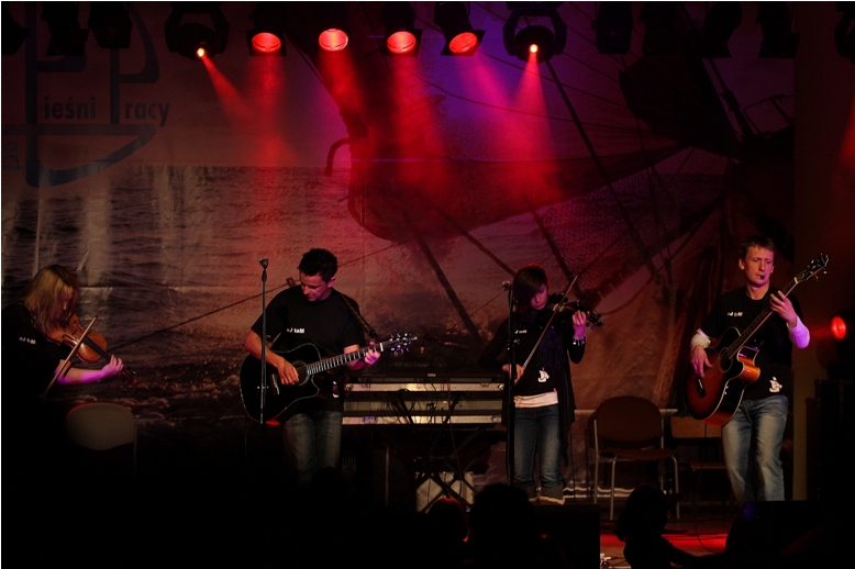 Sobotni wieczór z piosenką żeglarską w Tychach otworzyły zespoły, które do niedawna prezentowały się jeszcze w konkursach, a teraz coraz częściej stają na scenie w roli gwiazd, czyli Nok Rei z Częstochowy, a zaraz po nich Indygo z Gliwic. Obie grupy śpiewają głównie piosenki a cappella, jedynie Nok Rei wykonuje część utworów z towarzyszeniem instrumentów. W czasie występu częstochowianie zaprezentowali kilka nowości, ale jak zwykle najbardziej ujęła mnie ich Panna z Aughrim. Z kolei dziewczyny z Indygo nieodmiennie zachwycają mnie konferansjerką, w której bardzo dużo opowiadają o śpiewanych przez siebie utworach. A że w większości są to tradycyjne szanty i piosenki żeglarskie, to jest o czym posłuchać.Po gliwiczankach przyszedł czas na ogłoszenie wyników konkursu. Na scenie pojawiło się szanowne jury w pełnym składzie, czyli prof. Danuta Reichel, Agnieszka Krajewska, Grzegorz Tyszkiewicz, Maciej Jędrzejko i Wojciech Harmansa. Pierwsze miejsce, Wielki Dzwon Portu Pieśni Pracy oraz 4 000 złotych (brutto, jak zostało zaznaczone) przypadło zespołowi oJ taM z Częstochowy, drugie i Średni Dzwonek Aurze Mesy, a trzecie oraz Mały Dzwoneczek solistce, Marcie Śliwie.