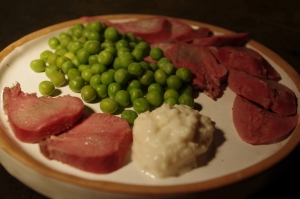 Ozorki cielęce myjemy w wodzie, wycinamy gruczoły ślinowe, które znajdują się przy nasadzie. Ziarna kolendry, dwa do trzech goździków, kilka ziaren pieprzu, kilka ziaren ziela angielskiego, ząbek czosnku i dwa listki laurowe miażdżymy w moździerzu wraz z łyżką stołową soli do peklowania. Tą marynatą nacieramy ozorki, wkładamy do naczynia emaliowanego lub kamionkowego, na wierzch kładziemy drewniany krążek lub talerzyk, który obciążamy. Chodzi o to, by ozorki zostały mocno wraz z marynatą przyciśnięte. Odstawiamy na dwa dni w temperaturze pokojowej. Po tym czasie rozpuszczamy w przegotowanej i ostudzonej wodzie kolejną łyżkę soli do peklowania i zalewamy nią ozorki. Całość przenosimy w chłodne miejsce - 4 do 8 stopni C - i peklujemy przez 7 do 8 dni. Po tym czasie ozorki starannie opłukujemy z marynaty, po czym wkładamy je do wrzącej wody. Gotujemy przez około jednej godziny. Ozorki wyjmujemy z wrzątku, schładzamy w zimnej wodzie i obieramy z wierzchniej chropowatej skórki. Obrane ozorki ponownie wkładamy do wywaru i jeszcze jakiś czas gotujemy do miękkości. Po wyjęciu kroimy je na plasterki i podajemy z zielonym gotowanym groszkiem i pure ziemniaczanym.