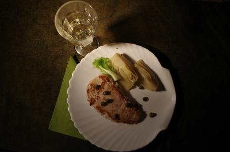 | Stek z miecznika Bulwę fenkuła przekroić na 4 części i włożyć do gotującej, posolonej wody. Blanszować przez około 5 minut. Wyjąć i odłożyć na papierowy ręcznik, aby pozbyć się nadmiaru wody. Na patelni rozpuścić odrobinę masła wraz z oliwą z oliwek, dolać kieliszek białego, wytrawnego wina. Gdy wino się zredukuje, położyć kawałki fenkuła, zmniejszyć ogień, patelnię przykryć i dusić przez około 15-20 minut, pilnując aby fenkuł nam się nie przyrumienił. Stek z miecznika pokropić sokiem z cytryny, odrobiną oliwy i wyłożyć na rozgrzany ruszt. Po mniej więcej trzech minutach obrócić. Gdy będzie zrumieniony z obu stron, położyć na talerzu, posolić i posypać kaparami oraz posiekanym oregano. Obok położyć kawałki fenkuła. Można to danie serwować z ugotowanym ryżem. |