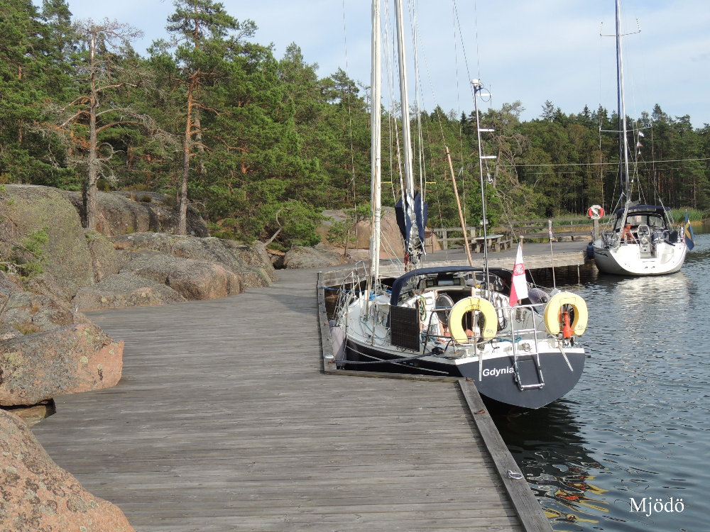 początkowo znów jazda na silniku. Później wiatr zmienił kierunek na SW do W i wzrastał stopniowo do 10 m/s. W przystani Nabbelund, (57° 20¢ 53¢¢ N, 17° 05¢ 26¢¢ E) w zatoce Grankulavik na północy Olandii, zacumowaliśmy w niedzielę o 0300. Wejście do tej zatoki nocą trochę podnosi poziom adrenaliny. Silną latarką taktyczną musiałem oświetlać czerwone i zielone bojki torowe (mają odblaskowe paski), no a samo końcowe podejście do przystani to już na pamięć – byliśmy tu kilka razy. O 1200 wypływamy w kierunku Vastervik, a o 1830 stajemy w ślicznej przystani klubowej na wyspie Mjödö (57° 46¢ 51¢¢ N, 16° 41¢ 41¢¢ E).
