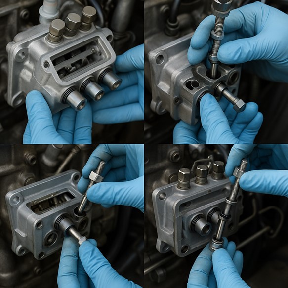 Porada 4. Zatarcie pompy wtryskowej (tłoczkowej) z powodu zanieczyszczeń w paliwie. To już nieco większa praca. Ale do wykonania w morzu. Oto dobra praktyka. Nie kręćcie kołami napędu po zdjęciu pompy z silnika - bo możecie mieć potem kłopoty z ustawieniem kąta wtrysku (jeżeli nigdy przedtem tego nie robiliście). Zdejmijcie pompę i odkręćcie pokrywy pompy (to szybka operacja), rozepnijcie listwę zębatą regulacji dawki wtrysku i wyciągnijcie zatarte tłoczki.