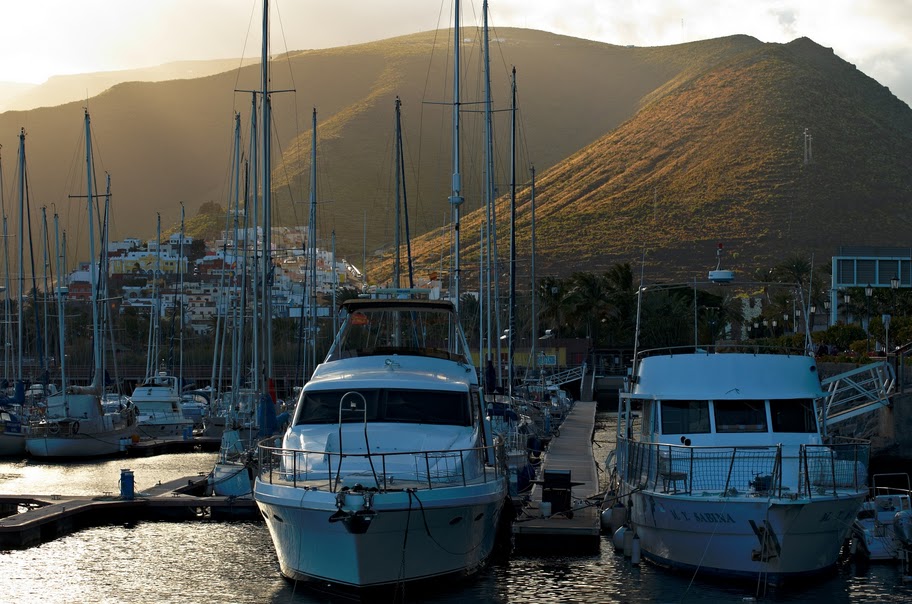 Bliżej Gomery już nie jest tak cicho. Aby dopłynąć do San Sebastian de la Gomera trzeba przeciąć dość rozległą strefę akceleracji, a właściwie dwie, tyle że przerwa pomiędzy nimi jest praktycznie gorsza od samych stref - wiatr jest co prawda przez chwilę słabszy, za to fale przychodzą z dwóch kierunków, co utrudnia prowadzenie jachtu, a przy okazji wredoty czasami się kumulują i mocno moczą załogę. Bywa niestety, że strefa kończy się dopiero kilka kabli przed zewnętrznym falochronem portu na Gomerze. Przy ogólnie gorszych warunkach pogodowych warto czasem dać się ponieść lekkim baksztagiem w lewo, co oddali nas od mariny, lecz jednocześnie doprowadzi do przybrzeżnej strefy ciszy. Tam spokojnie zrzucimy żagle i pokonamy te kilka nadłożonych mil do mariny na silniku, podziwiając z bliska krajobrazy Gomery. Niestety przy wychodzeniu z San Sebastian w kierunku Teneryfy metoda ta już tak dobrze nie działa. Odchodząc wzdłuż wyspy zapłacimy wejściem w lekko tylko osłabioną strefę bajdewindem, a z drugiej strony przy złych warunkach pogodowych, wyjście z portu bezpośrednim kursem na Teneryfę czy nawet Gran Canarię potrafi być mocno problematyczne. Skipper niemieckiej załogi, z którym próbowałem porozmawiać po ich udanym powrocie z nieudanej próby wyjścia w trudnych warunkach, mocno ociekając wodą i z lekkim wytrzeszczem oczu stwierdził tylko „dużo za dużo wiatru” - niewiele ponad pół godziny wcześniej miejscowi “marinero” próbowali mu usilnie wytłumaczyć, że nie należy walczyć z rzeczywistością.