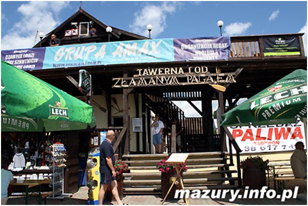 Gdy kolejny mazurski dzień przywita nas w Mikołajkach, warto wyruszyć na spacer i zwiedzić najładniejsze miasteczko Krainy Wielkich Jezior. Mikołajki w sezonie są zawsze zatłoczone i hałaśliwe. Na niedużym terenie koncentruje się ożywiony ruch turystyczny. Turyści zapełniają ogródki restauracji w rynku miasteczka i wzdłuż nabrzeża. Główny szlak spacerowy ciągnie się bulwarem od podwieszonej na wantach kładki dla pieszych, przy której znajduje się przystań Białej Floty, aż do niedużej Eko-Mariny, gdzie kończą się knajpki i „summer shopy”. W masowej wyobraźni Mikołajki funkcjonują, jako wielka „wioska żeglarska”, stąd też wędrując wzdłuż nabrzeża łatwo zauważyć kreatywne oferty rejsów i imprez na jachtach skierowane do niezbyt zorientowanych zwiedzających. Nigdzie nie znajdziemy równie drogich wycieczek i podobnie licznej floty „jachtów bez patentu”. Większość mijanych knajp wystrojem wyraźnie odnosi się do kultury żeglarskiej, łagodnie balansując pomiędzy kiczem a wysublimowaniem. Najciekawsze miejsca znajdują się w bezpośredniej bliskości mariny. Na parterze budynku kapitanatu mieści się, znana ze zwrotek szanty „Morskie Opowieści”, tawerna „Złamany Pagaj”, jedna z najstarszych mazurskich tawern.