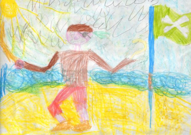 Mam przed sobą książeczkę, która w nieletnich może wzbudzić zainteresowanie światem piratów i przygód morskich. Skierowana jest do najmłodszych, choć jak przeczytamy na tylnej stronie okładki, „ze względu na małe elementy, przeznaczona jest dla dzieci powyżej 3 lat”. Małe elementy? No tak, bo jest to książka nie tylko do czytania, ale i do zabawy. Oprócz broszurki z tekstem, zabawnym i barwnie ilustrowanym, mamy tu także rozkładaną makietę wyspy i pirackich statków, a także wiele figurek bohaterów opowieści oraz przedmiotów, którymi owe figurki można obdarzać. Uważam, że taka książka wraz z zabawową zawartością prędzej wpłynie na zainteresowanie dziatwy sprawami morskimi, niż pozbawione wyobraźni i polotu zwykłe nurzanie tejże dziatwy w wodzie.