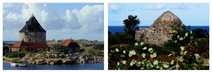 Stoimy tuż przy żółtych koszarach, niedaleko wąskiego mostku dla pieszych mieszkających po drugiej stronie wyspy. Na wyspie mieszka kilkudziesięciu stałych mieszkańców. Jest sklepik, rybacy codziennie przypływają ze świeżymi rybami. Sielanka. Z góry, z maleńkiego cmentarzyka widać Bornholm.