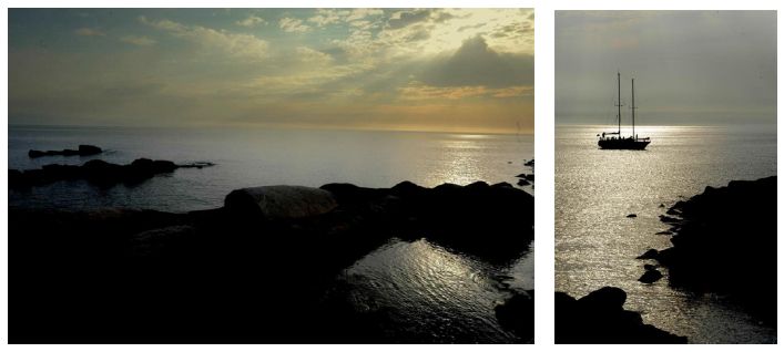 Uspokoiłem się nieco. Z głową i oczami okey. Co za kretyn świeci kolorowymi światłami na własnego grota na środku Bałtyku? Nadal obserwujemy zjawisko. Po chwili już wiemy. To nie grot, a róg księżyca wynurzający się z morza o wschodzie. Niesamowite wrażenie.