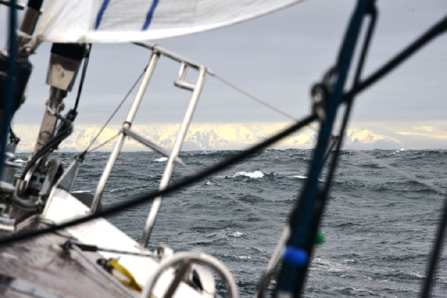 Pokryte lodem góry Półwyspu Antarktycznego zobaczyliśmy już z odległości 60 mil. Podziwianie krajobrazów nie trwało zbyt długo. W tężejącym wietrze wpłynęliśmy w wąski Kanał Neumayera. Sztorm zszedł aż w Cieśniny, pogarszając widoczność. Podczas refowania głównego żagla w Cieśninie Gerlacha doszło do uszkodzenia listwy grota. Wyrwany został z masztu kawałek szyny w miejscu łączenia się dwóch listew. Awaria uniemożliwiała zarówno całkowite zrzucenie żagla, jak i jego postawienie. Rozpędzający się do 45 węzłów wiatr nie pozwalał na usunięcie usterki na otwartej wodzie. Aby dokonać napraw musieliśmy znaleźć schronienie między wyspami. Osłonę przed zafalowaniem dały nam Wyspy Melchiora (Melchior Islands). W ich cieniu po całonocnej pracy w sztormowych warunkach, w miejsce wyrwanej listwy dopasowana została nowa. Po 14 godzinach mogliśmy wznowić żeglugę.