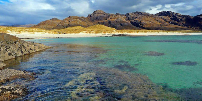 Wybrzeża Hebrydów to nie tylko wysokie klify, ale i piękne, piaszczyste plaże. Na zdjęciu "karaibska" plaża na wyspie Eigg.