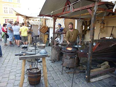 Kochani przyjaciele, nieciekawe prognozy pogody zmusiły nas do pozostania w Stralsund przez trzy dni, lecz nie nudziliśmy się absolutnie. W mieście bowiem miał miejsce w tym czasie jarmark średniowieczny i wszyscy mieszkańcy przebrani byli za barbarzyńców, francuskich fircyków i rycerzy. Obok portu rozbite było obozowisko, na którym w namiotach spali przyjezdni, a pośrodku nad ogniskiem powoli piekł się wielki prosiak. Jednak największe tłumy opanowały rynek. Mnóstwo stoisk ze średniowiecznym jadłem i tutejszymi specyfikami sprawiły, że humory dopisywały nam przez cały czas. Ponadto odkryliśmy wspaniały kram z przepysznymi, domowymi winami, sprzedawanymi w glinianych kielichach. Grzechem byłoby nie dać się ponieść tej atmosferze średniowiecznej rozpusty…