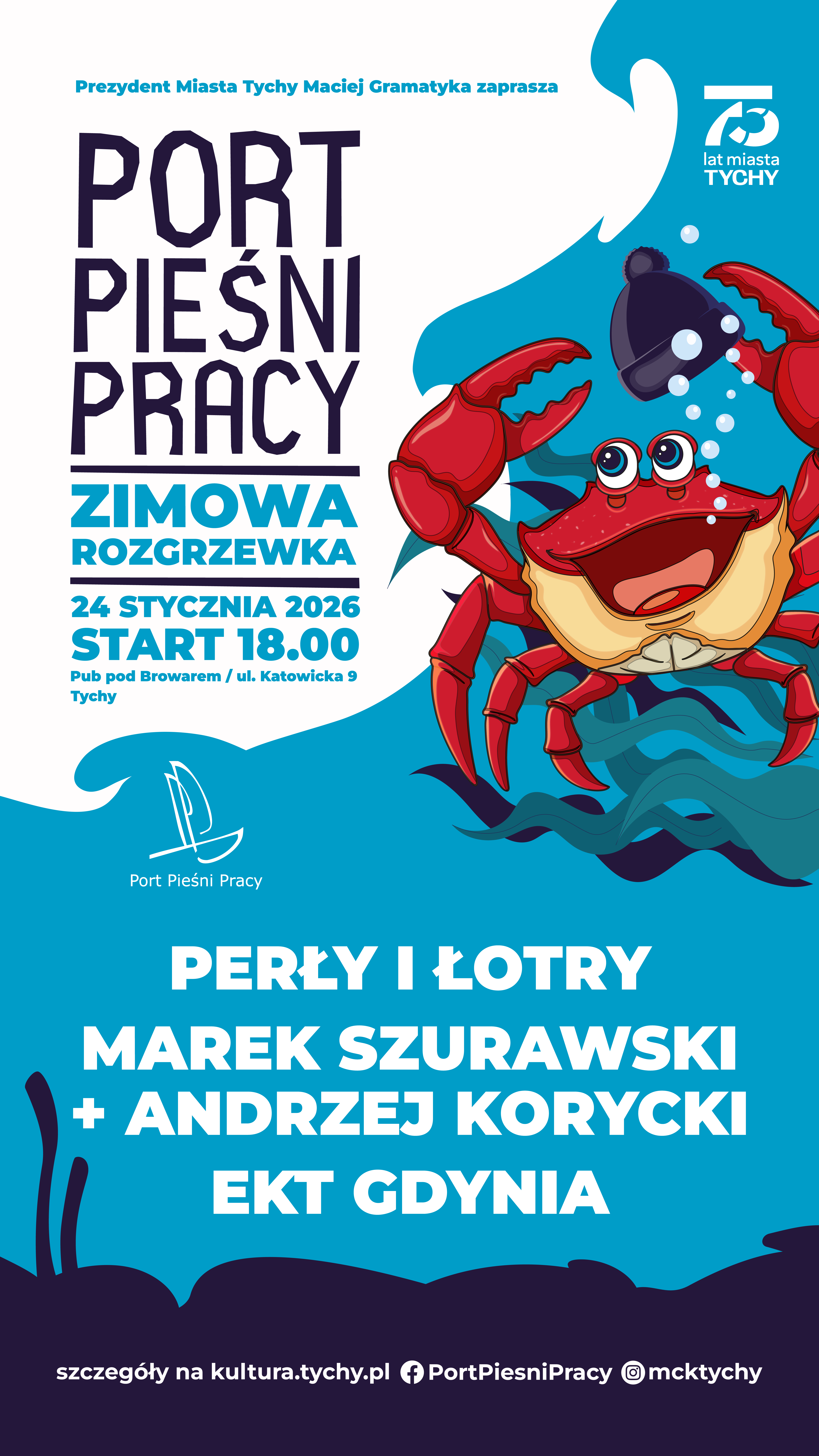 Tęsknicie już za latem, wiatrem we włosach i żeglarskim klimatem? Jest sposób na tę tęsknotę: zanim zima na dobre rozkręci sztormy, w Tychach pod Browarem podnosimy kotwicę i otwieramy sezon polskich festiwali szantowych. 24 stycznia 2026 r., od 18.00 do północy zapraszamy na Zimową Rozgrzewkę Portu Pieśni Pracy – wieczór pełen szant, pieśni morza i wspólnego śpiewania, który od lat rozgrzewa styczniowe kalendarze fanów muzyki żeglarskiej.