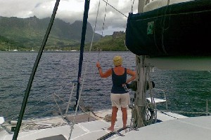 Tymczasem Errol znalazł zastępstwo na moje miejsce. 19 letni Kanadyjczyk zamierza płynąc do Australii. Z jego wypowiedzi wynika, że doświadczeniem żeglarskim nie ustępuje wielu znacznie starszym. Errol zamierza opuścić Tahiti we wtorek (chciał w poniedziałek, ale ten dzień to święto i nie mógłby się odprawić). Tym sposobem zostaję „bez dachu nad głową”. At Play również dotarł do Papeete, jednak jak się dowiaduję, oni również chcą opuścić to miejsce we wtorek. Właściwie główny problem to plecak. Nie sposób go wszędzie taskać. Czas pokaże. At Play wybiera się na Moorea by spędzić tam ok. 2 dni. Może zabiorę się z nimi, a potem wrócę promem (10$).
