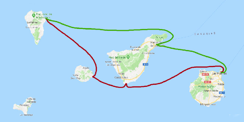 | Trasa | Las Palmas De Gran Canaria- Las Galletas - San Sebastian de la Gomera - Santa Cruz de la Palma - Santa Cruz De Tenerifa- Las Palmas De Gran Canaria |