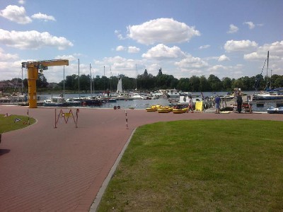 Najnowocześniejsza w Wielkopolsce przystań „Marina” oddana w 2010r. znajduje się 300 m od „Term Ślesińskich” i przyciąga rzesze turystów. Na przystań składają się trzy pomosty, z których jeden przystosowany jest dla większego statku. Marina posiada 72 miejsca do cumowania jednostek pływających. Przy brzegu stoi też żuraw do wodowania i wyciągania z wody łodzi. Przygotowane zostało również zaplecze sanitarne, hangar służący jako magazyn albo miejsce szkoleń, pomieszczenie dla policji i Wodnego Ochotniczego Pogotowia Ratunkowego oraz chata grillowa. Wybetonowany slip, z wygodnym dojazdem 100 m dalej w parku miejskim umożliwia wodowanie jednostek pływających. Zaletą przystani jest również to, że jeziora wchodzące w skład kanału ślesińskiego, włączone są do obiegu chłodniczego pobliskich elektrowni „Konin” i „Pątnów” z Zespołu Elektrowni PAK. Podwyższona temperatura wody pozwala przedłużyć sezon do uprawiania sportów wodnych o kilka tygodni. Łatwy dostęp do miejscowych wypożyczalni sprzętu wodnego umożliwia uprawianie żeglarstwa i kajakarstwa. Spragnieni mocnych wrażeń mogą spróbować swoich sił na nartach wodnych, motorówkach, skuterach, czy wskakując w sprzęt do nurkowania. Jezioro Ślesińskie wchodzi w skład Wielkiej Pętli Wielkopolski, którą tworzą trzy łączące się drogi wodne: Rzeka Warta: od Santoku do Konina (338,4 km), dalej droga wodna Warta - kanał Bydgoski (146,6 km) - do pokonania 12 śluz, i rzeka Noteć (205 km) - do pokonania 16 śluz). Licząca 690 km Wielka Pętla Wielkopolski zaczyna się i kończy w Santoku - miejscu, gdzie do Warty wpływa rzeka Noteć. Wielka Pętla Wielkopolski jest również częścią drogi wodnej Wisła - Odra - jedynego śródlądowego połączenia między drogami wodnymi Europy Zachodniej i Europy Wschodniej w dorzeczu Wisły, Niemna i Dniepru.