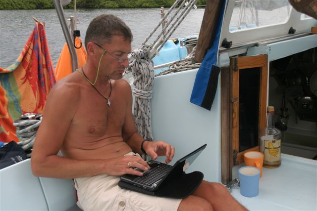 Innym elementem wyposażenia, które oczywiście nie jest niezbędne, jest laptop. Dziś dostępne są małe notebooki. Są naprawdę małe i całkiem lekkie. Nie namawiałbym Was do tego, jednak doświadczenie uczy, że będziecie chcieli od czasu do czasu skontaktować się z rodziną i przyjaciółmi pozostawionymi na lądzie, w kraju. Nie zawsze kafejka internetowa będzie dostępna. O kosztach nie wspominam. Oczywiście zawsze można poprosić o udostępnienie Internetu któregoś z żeglarzy, ale robienie tego zbyt często nie przysporzy Wam przyjaciół. Każdy chce w wolnej chwili nawiązać kontakt z domem i siedzący nad głową, w oczekiwaniu na swoja chwilę w Internecie, nie jest mile widziany (szczególnie, gdy dzieje się to nagminnie). Poza tym własny laptop, nawet malutki, to niezależność. Także nawigacyjna. Może być bardzo pomocny, gdy stary, wysłużony i zalany słoną woda laptop skippera niespodziewanie zakończy swój intensywny żywot.
