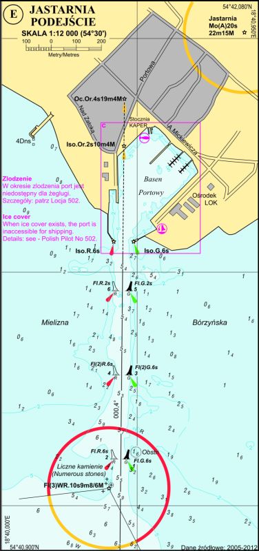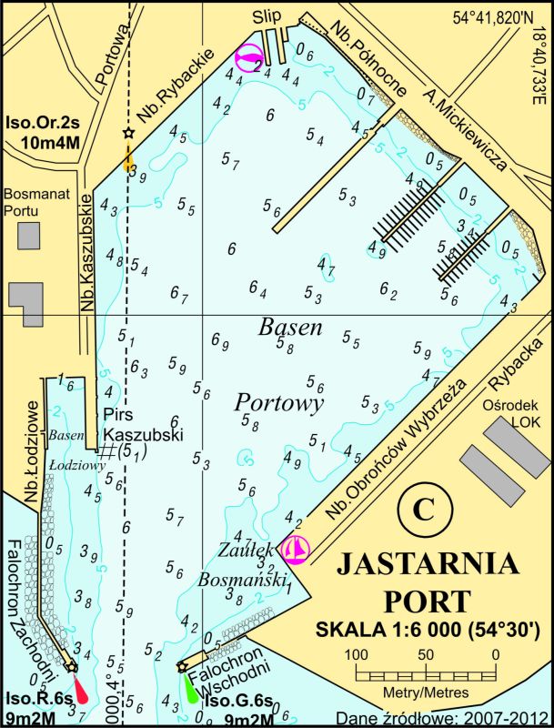 Prezentowane w artykule Mapy Morskie zostały opublikowane za zgodą Szefa Biura Hydrograficznego Marynarki Wojennej, za co składam serdeczne podziękowania. Nie mogą być one w żadnym przypadku wykorzystywane do prowadzenia nawigacji. Nie mogą być również publikowane poza portalem www.tawernaskipperow.pl.