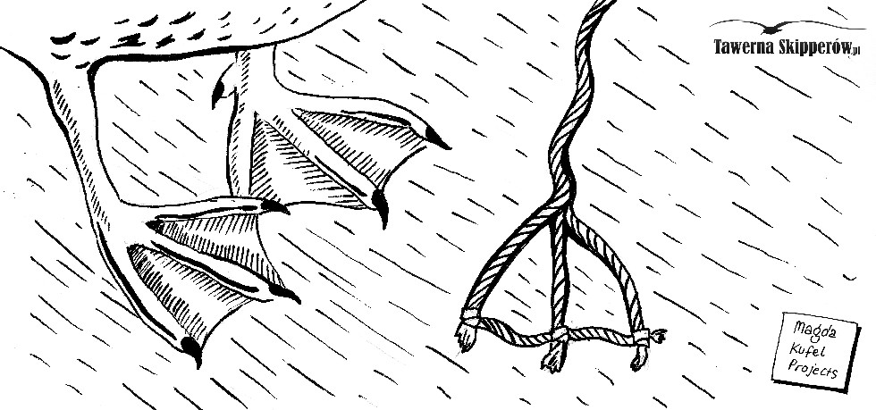O ile opcję związaną z kurą można jeszcze zaakceptować (chodzi o to, by z jednej grubej liny wyodrębnić trzy mniejsze, sterczące w różne strony), o tyle jeśli spojrzymy na nogę gęsi, nie sposób zrozumieć, co właściwie może ona mieć wspólnego z powstałym tworem. Prawdopodobnie ma to jakiś związek z faktem, że prawdziwi ludzie morza rzadko oglądają gęsi, a jeśli już, to albo na talerzu, albo lecące w kluczu - a w obu przypadkach nóżek akurat nie widać.