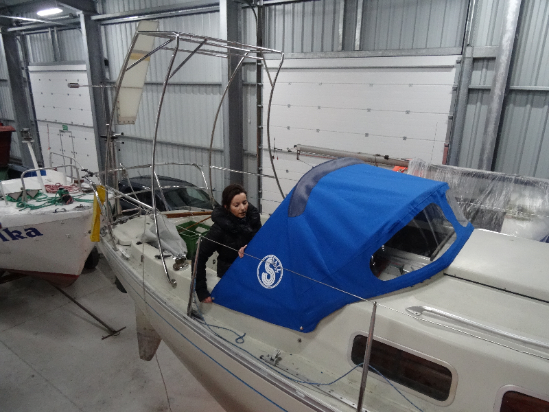 Kolejny strategiczny sponsor – gdańska żaglownia Sail Service – wykonała cały komplet nowych żagli dla SPUTNIKA II i sprayhood który zabezpiecza kokpit przed bryzgami. Wszystko z najlepszych dostępnych tkanin. Przykładowo materiał grota to dakron AP 280/320. Mocny, ma wytrzymać długi rejs. Gramatura 280/320 łączona, lik tylny i dolny wzmacniany AP 320. Żeby żagiel był szybki zastosowano krój triradialny i pełne listwy. Pełne listwy mam też w starym grocie chociaż w oryginalnym projekcie Shipmana 28 są krótkie. Z pełnymi listwami żagiel się dużo mniej zużywa i lepiej ciągnie. Krój triradialny z kolei daje lepszy rozkład sił w materiale zwiększający wytrzymałość żagla (więcej szwów) i lepszy profil. Pozwala też na łączenie tkanin o różnych gramaturach. Dzięki takiemu krojowi żagiel dłużej trzyma kształt. W zasadzie stosuje się go do jachtów regatowych ale zawsze lepiej mieć trochę więcej ciągu.